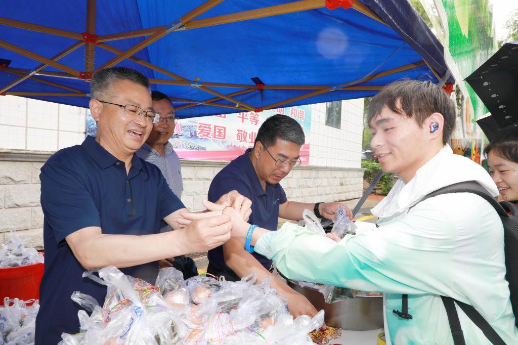 为深入学习贯彻习近平新时代中国特色社会主义思想和党的二十大精神,感受传承千年的中华文化和爱国情怀。6月21日,学校开展第七届“爱在牡医·情暖校园”关爱行动之“浓情端午”活动暨2023届毕业生“最后一堂思政课”。学校党委书记马宏坤、校长朱晓峰、党委副书记张德才、副校长刘星、副校长胡文华、学生工作部(处)及后勤管理处老师与60余名优秀毕业生代表及在校生代表,一起包粽子、戴香囊、系彩线、挂艾草共度端午佳节。片片粽叶裹温情,粒粒糯米载心意。