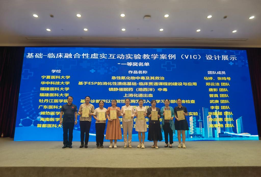 学校高度重视临床实验教学,深度开展教育教学改革,支持实验教学数字化,鼓励教师积极参与全国性赛事。本次研讨会上,我校教务处医学技能中心武庚老师参加了“基础-临床融合性虚实互动实验教学案例(VIC)设计展示”比赛,她的参赛作品“基于诊断学以自发性气胸为切入点学习胸部体格检查”,在全国众多高校中脱颖而出,荣获高校组一等奖,实现了我校教师在此项目上的历史性突破,并受邀在大会上做展示汇报。