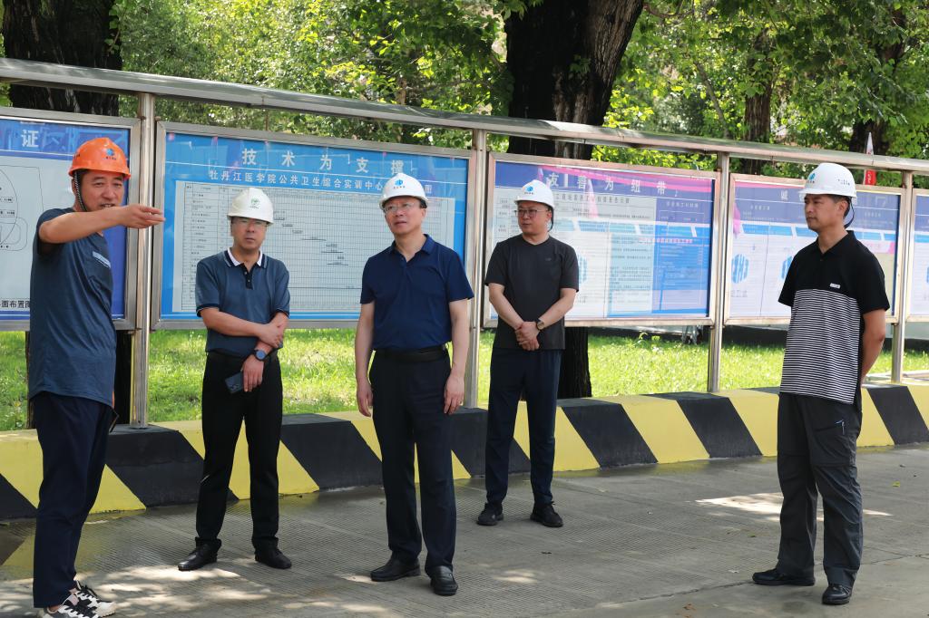 朱晓峰一行重点检查了学生餐饮中心、图书馆、校园监控中心、科技楼、采暖地沟扩建工程及公共卫生实训中心施工现场等场所,听取各相关部门负责同志的现场汇报,仔细了解工程项目安全管理、质量管控、安全巡查、隐患整改、责任措施等情况。