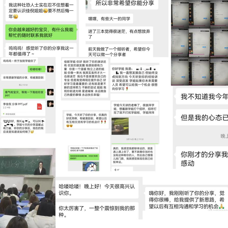 2023年1月份李思瑶开始了青年赋能演讲之路,在每次的分享会中向数百个想要上进、但对自己现状不满意的青年讲述了她一路上的故事与经历,并分享了她在竞赛、实习、求职与心态成长方面的经验;并建立了青年赋能类公众号勇气驿站,在探索阶段每月一篇分享着实习、竞赛等渠道与自己一路走来的心路历程,她希望能尽她最大的力量把自己这几年积累的所有资源和渠道都分享给他们,她发自内心的希望能通过自己的力量帮助每一个想前进的青年,让未来这里能够有越来越多的青年逆流而上,永远都做那个在低谷中、在悬崖峭壁上野蛮生长的玫瑰,在贫瘠的土壤中努力朝着阳光的方向汲取营养。