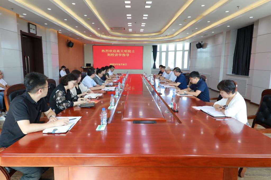 讲座结束后,高院士和朱晓峰校长在十七楼中会议室与教师代表就“提高科学研究水平,加快学科建设进程”进行座谈,各二级学院领导、科研骨干参加了座谈会。座谈会由科研处处长关艳中主持。