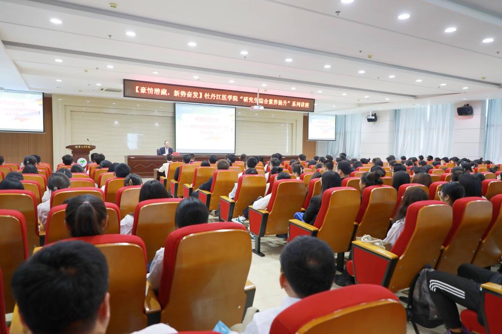 马宏坤以习近平总书记视察哈尔滨工程大学以及在哈尔滨主持召开新时代推动东北全面振兴座谈会并发表重要讲话作为导入,从中国式现代化具有基于自己国情的中国特色,中国式现代化的本质要求,推进中国式现代化建设原则的重大要求这三方面深入剖析了中国式现代化的内涵。他还讲解了牡丹江医学院的发展历程及特色,旨在让我校研究生了解学校、热爱学校,最后能够成为具有家国情怀,心系母校,具有社会担当的牡医人。