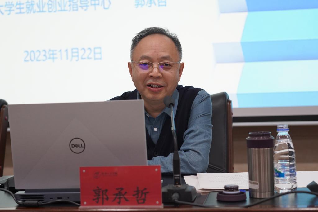 为更好的贯彻落实2024届全省普通高校毕业生就业创业工作会议精神,加强我省就业工作队伍专业化建设、提高专业化服务水平,省大学生就业创业指导中心于11月22日在牡丹江医学院举办第七届“送培训进校园”牡丹江地区高校专题培训。省大学生就业创业指导中心主任郭承哲以《同牡丹江(地区)高校聊就业》为题做专题培训。省大学生就业创业指导中心就业创业服务部副部长冯宇楠、牡丹江地区高校就业工作负责同志、毕业班辅导员等130余人参加专题培训。