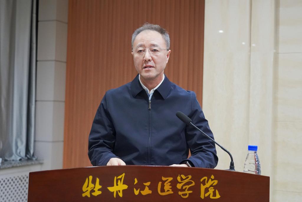 为全面落实党的教育方针,学习贯彻习近平总书记关于人才培养工作系列重要论述,深化能力作风建设“工作落实年”活动,推动特色应用型医科大学建设。2023年12月4日,我校采取线上线下相结合的方式召开牡丹江医学院第十三次教学工作会议。学校领导班子成员出席会议。学校副处级以上干部、各教学单位教学管理人员、教学职能部门副科级以上人员在临床技能实训中心17楼会议室参加线下会议,各教学医院教学管理人员、无课教师通过钉钉平台参加线上会议。会议由学校副校长刘星主持。