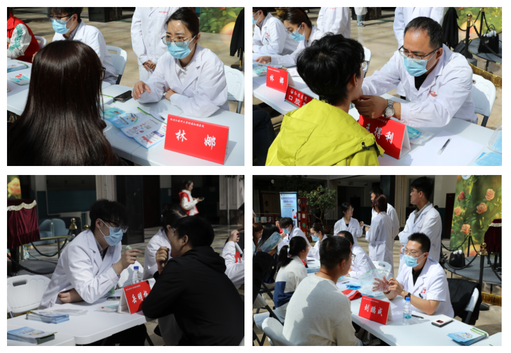 活动紧扣“口腔健康,全身健康”理念,突出科普导向,将专业服务与趣味互动有机融合,吸引近千名师生参与,全方位提升学生口腔健康素养。活动设置专家诊察、科普知识和趣味问答三大环节,口腔医学专家团现场坐诊,提供个性化建议并借助牙齿模型演示刷牙盲区;志愿者发放科普手册,普及刷牙、使用牙线、减糖护齿等知识;创新采用“线上+线下”趣味答题模式,线上学习通答题通道吸引超800名同学参与,实现“寓学于乐”。