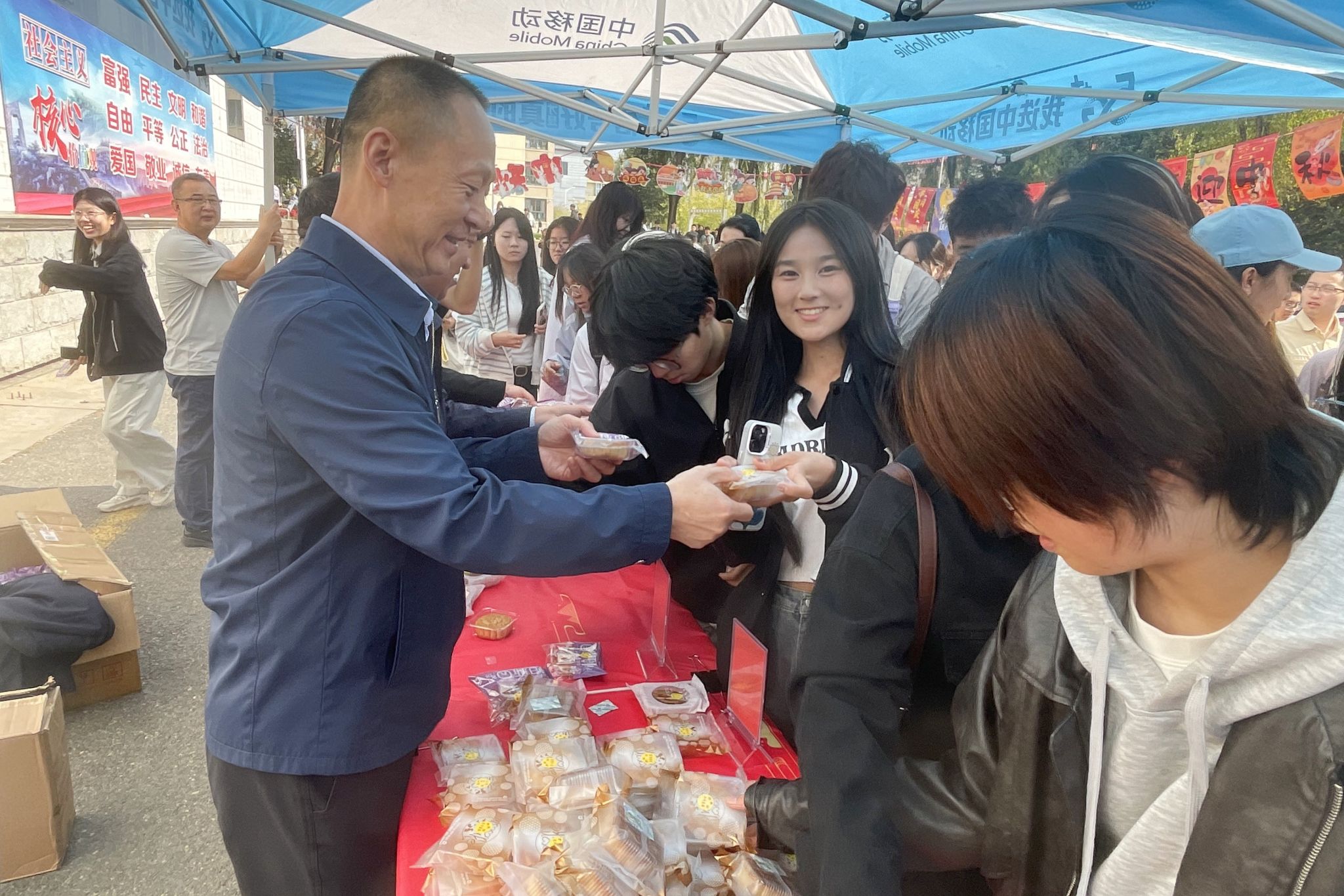 为传承中华优秀传统文化,营造浓厚节日氛围,让学生们在校园里也能感受到“家”的温暖,9月29日中午,牡丹江医科大学校园餐饮中心精心策划并组织了中秋送月饼活动,为全体在校学生免费发放了专属定制的“牡医大校徽”中秋月饼。学校党委书记马宏坤来到现场参加活动,校长、党委副书记李春江,副校长胡文华、张修明等多位领导现场为同学们发放月饼。
