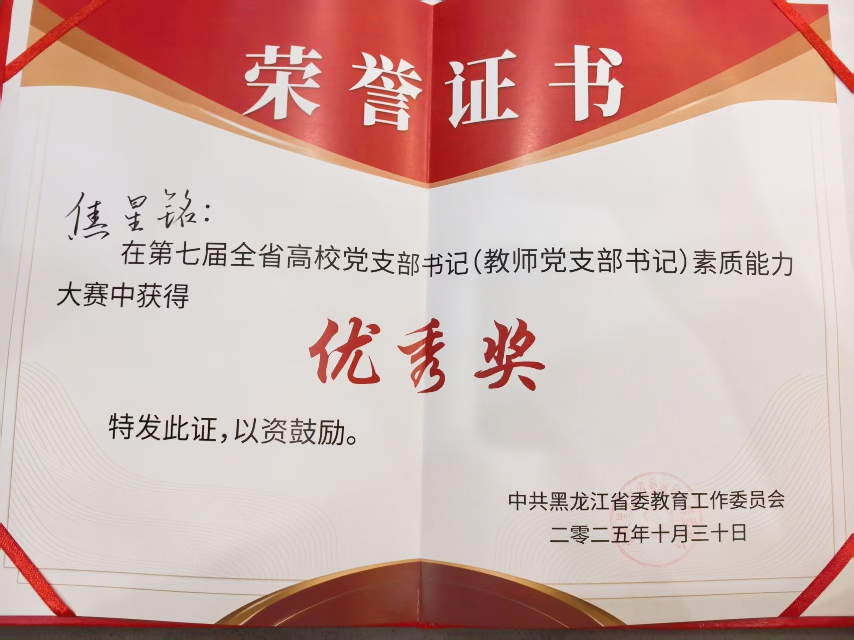 10月30日,以“党建引领促发展,强国有我勇担当”为主题的第七届全省高校党支部书记素质能力大赛圆满落下帷幕。为备战此次大赛,学校党委组织部认真筹备,高标准遴选,择优确定参赛人选。针对大赛设置的基础知识测试、组织生活方案设计、形成工作典型案例、谈心谈话、微党课和理论宣讲等核心环节,帮助选手查漏补缺、打磨细节,全方位提升实战能力。