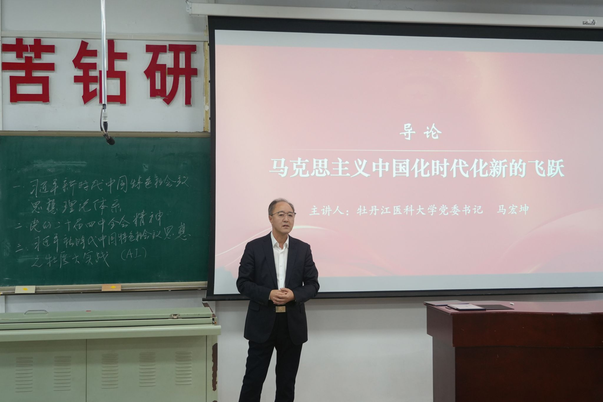 为深入学习贯彻习近平新时代中国特色社会主义思想和党的二十届四中全会精神,落实立德树人根本任务。11月6日下午,学校党委书记马宏坤以“深悟习近平新时代中国特色社会主义思想 凝聚牡丹江医科大学跨越发展新动能”为题,为2025级研究生讲授《习近平新时代中国特色社会主义思想研究》专题思政课,引导青年学子坚定理想信念、锚定奋斗方向。