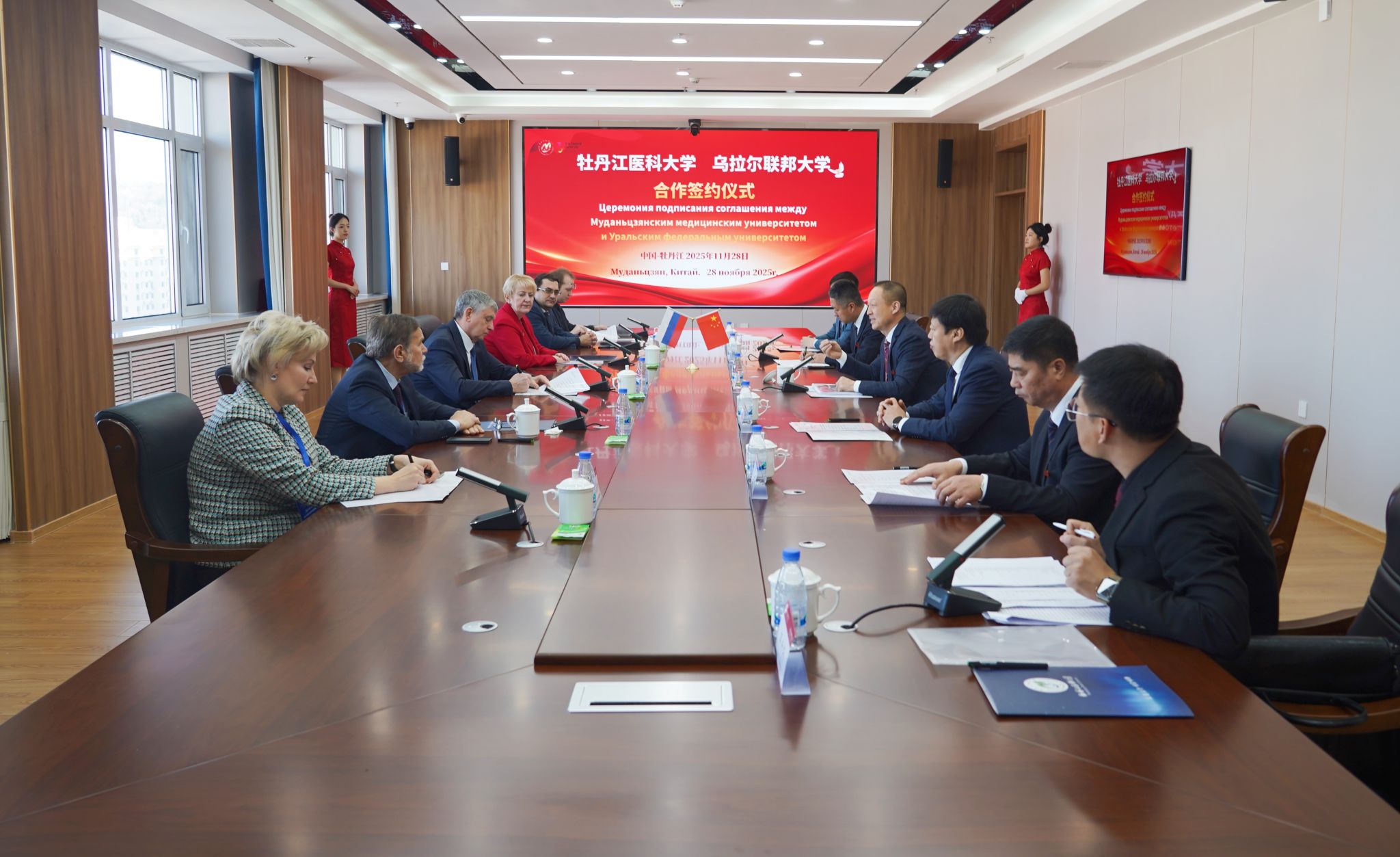 李春江代表学校对郭科沙洛夫·维克多·阿那多利耶维奇一行的到访表示欢迎,并感谢乌拉尔联邦大学对两校交流合作所做的努力。他指出,学校的高质量发展离不开国际视野和开放合作,此次与乌拉尔联邦大学签署合作协议,是学校推进高水平对外开放的重要举措。双方将充分发挥各自优势,共同探索高素质医学人才培养新模式。