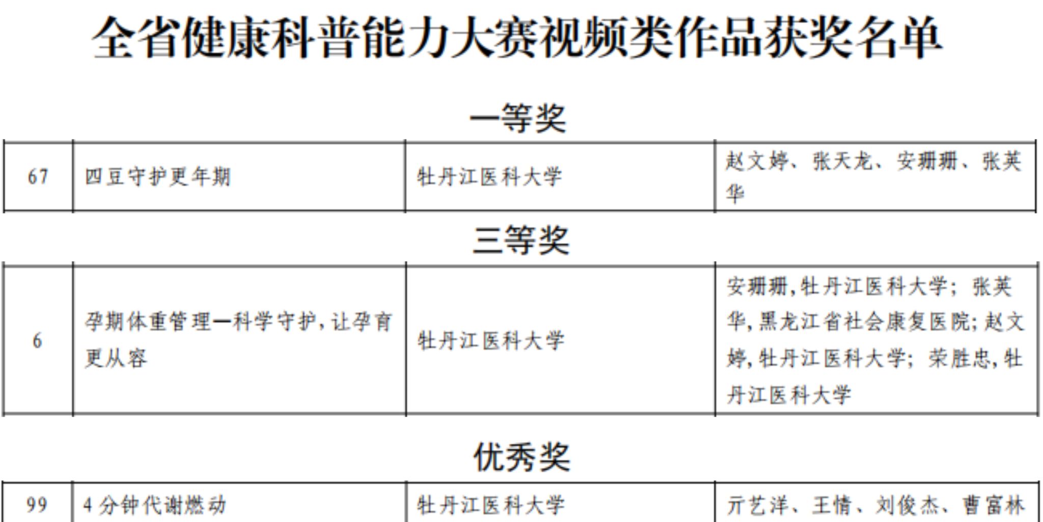 这些科普作品斩获佳绩,既是对作品自身优质内容的充分认可,更是对学校主动投身健康知识普及工作、切实服务群众健康需求的有力彰显。未来,学校将继续扎实推进推动健康知识普及,充分发挥健康科普主阵地和主力军作用,围绕群众健康需求,深入挖掘健康科普宣传主题,努力创作出更多大众喜闻乐见、科学实用、通俗易懂的健康科普作品,为健康中国建设贡献龙江力量。