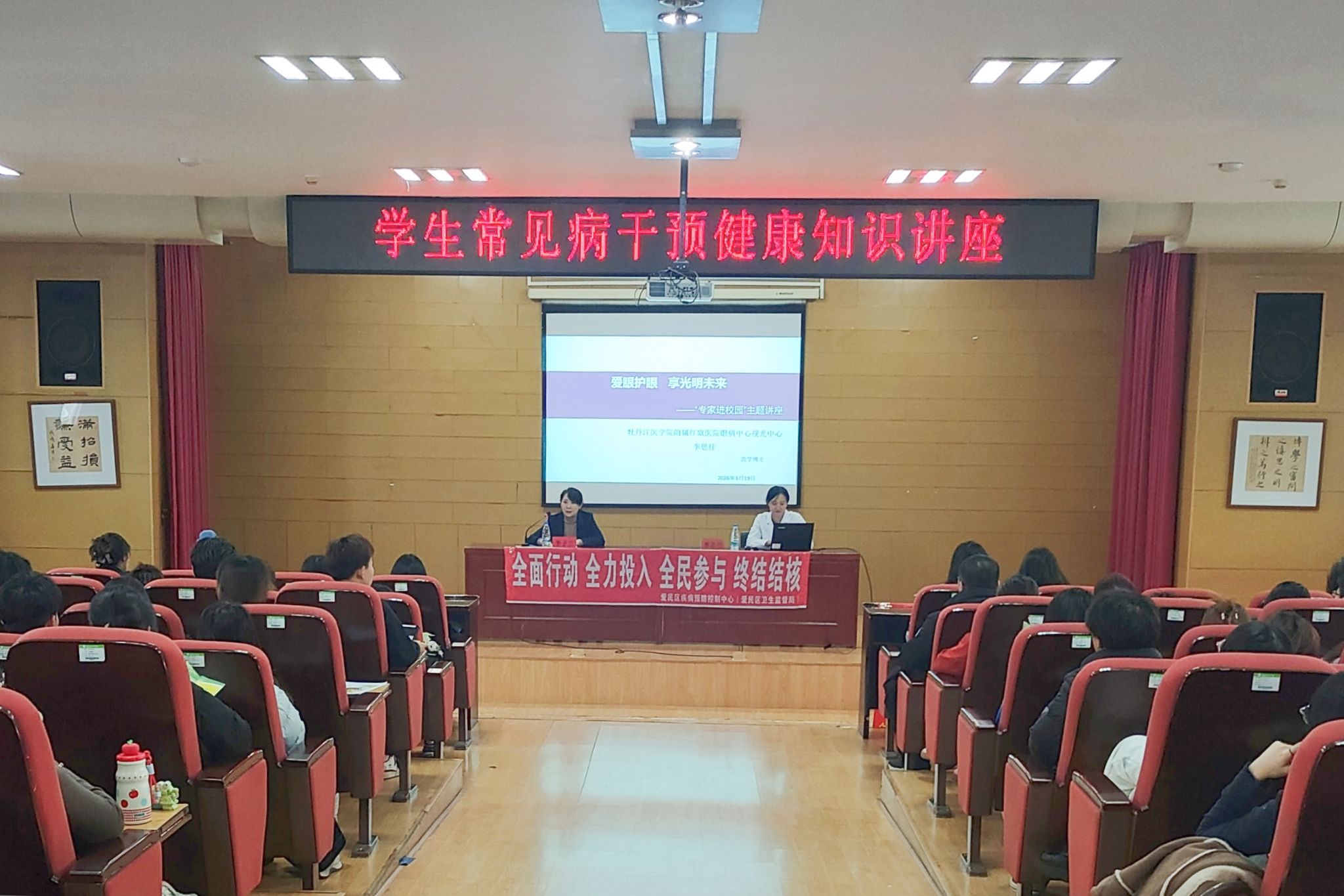 为提高在校学生眼病预防保健和传染病防控意识,3月19日下午,学校医务处联合第一临床医学院、校团委,邀请学校附属红旗医院、牡丹江市爱民区疾控中心的专家入校,为第一临床医学院的同学们宣传讲解爱眼护眼和肺结核防治相关知识。讲座在图书馆多功能厅举行,由医务处处长李子兰主持。