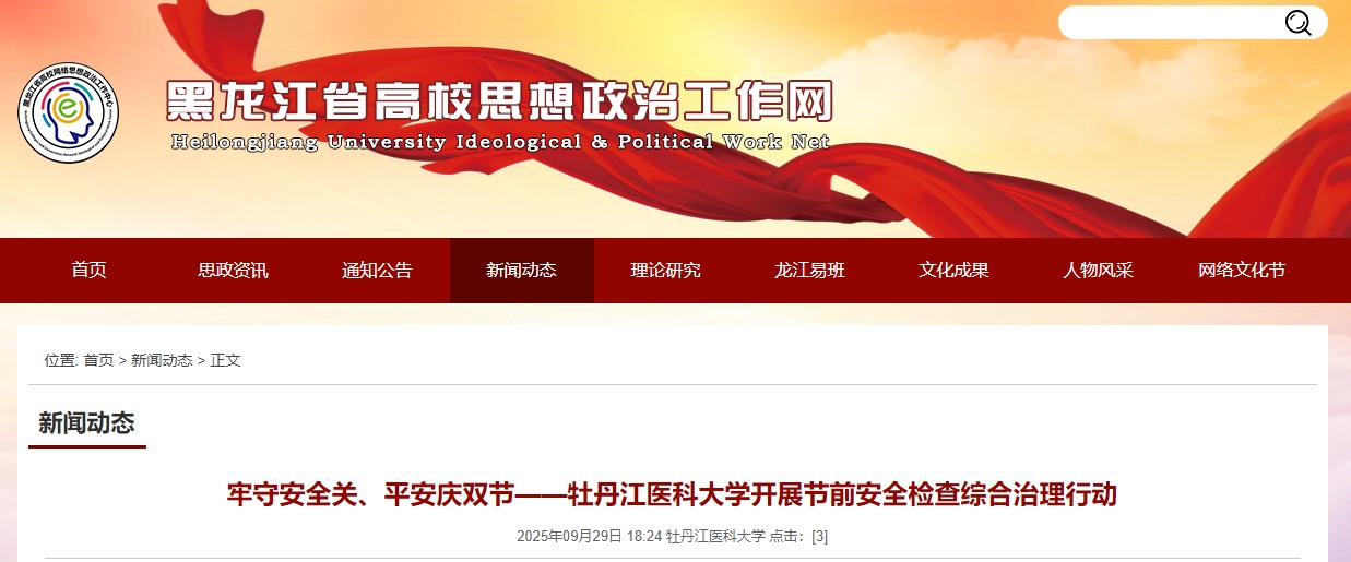 此次节前安全专项检查,进一步夯实了校园安全管理基础,强化了学校的安全主体责任。下一步,牡丹江医科大学将持续深化安全隐患排查整治,强化安全教育,全力守护校园安全稳定,为师生营造平安和谐的校园环境。