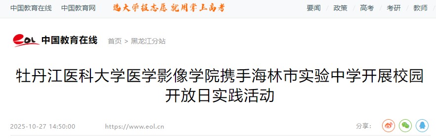 此次校园开放日实践活动的圆满举办,是牡丹江医科大学医学影像学院践行“以生为本、育人先育志”教育理念的生动实践,更是深化“校校合作”、打通“高中—大学”育人链条的重要举措。活动不仅让高中学子从“设备、技术、文化、精神”四个维度,全方位认知医学影像专业的内涵与价值,更以“领导领航、教师引路、朋辈同行”的温暖模式,传递了医学专业的责任与荣光。医学影像学院将持续创新育人载体,计划通过多元形式,深化与地方高中的常态化合作,进一步搭建“基础教育与高等医学教育衔接”的长效桥梁,为培养担当民族复兴大任的卓越医学人才、助力健康中国建设注入更多青春力量。