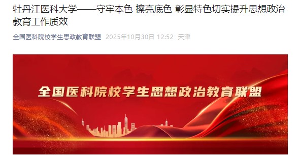 牡丹江医科大学坚持以习近平新时代中国特色社会主义思想为指导,深入学习贯彻党的二十大和二十届三中全会精神,全面贯彻落实全国、全省教育大会精神,牢记为党育人、为国育才初心使命,守牢思想政治教育工作的本色、擦亮社会主义办学方向的底色、彰显医学院校学生工作的特色,切实提升思想政治教育工作质效,不断提高人才培养质量和水平,努力为龙江高质量发展可持续振兴,乃至教育强国建设提供坚强支撑。