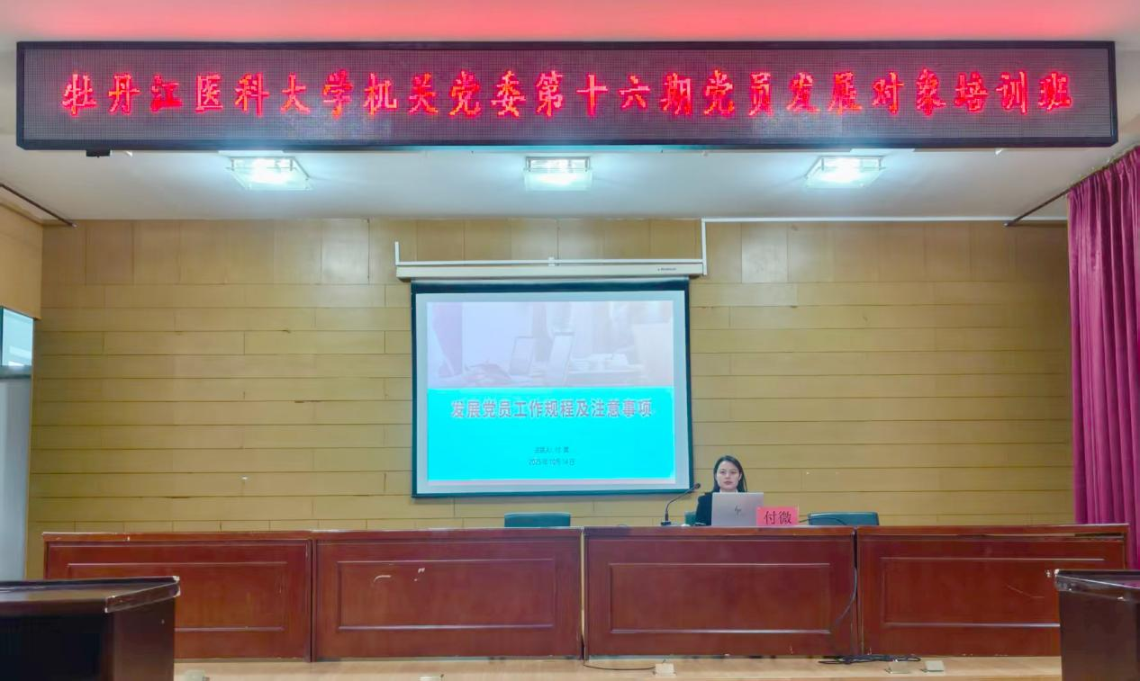 为切实提升党员发展对象的政治素养与理论水平,筑牢理想信念根基,2025年10月9日至10月14日,由牡丹江医科大学机关党委主办、研究生党总支承办第十六期党员发展对象培训班。通过五场主题鲜明、内容深刻的专题授课,以及丰富的自学理论内容,为学员们带来系统的理论“充电”与思想洗礼。