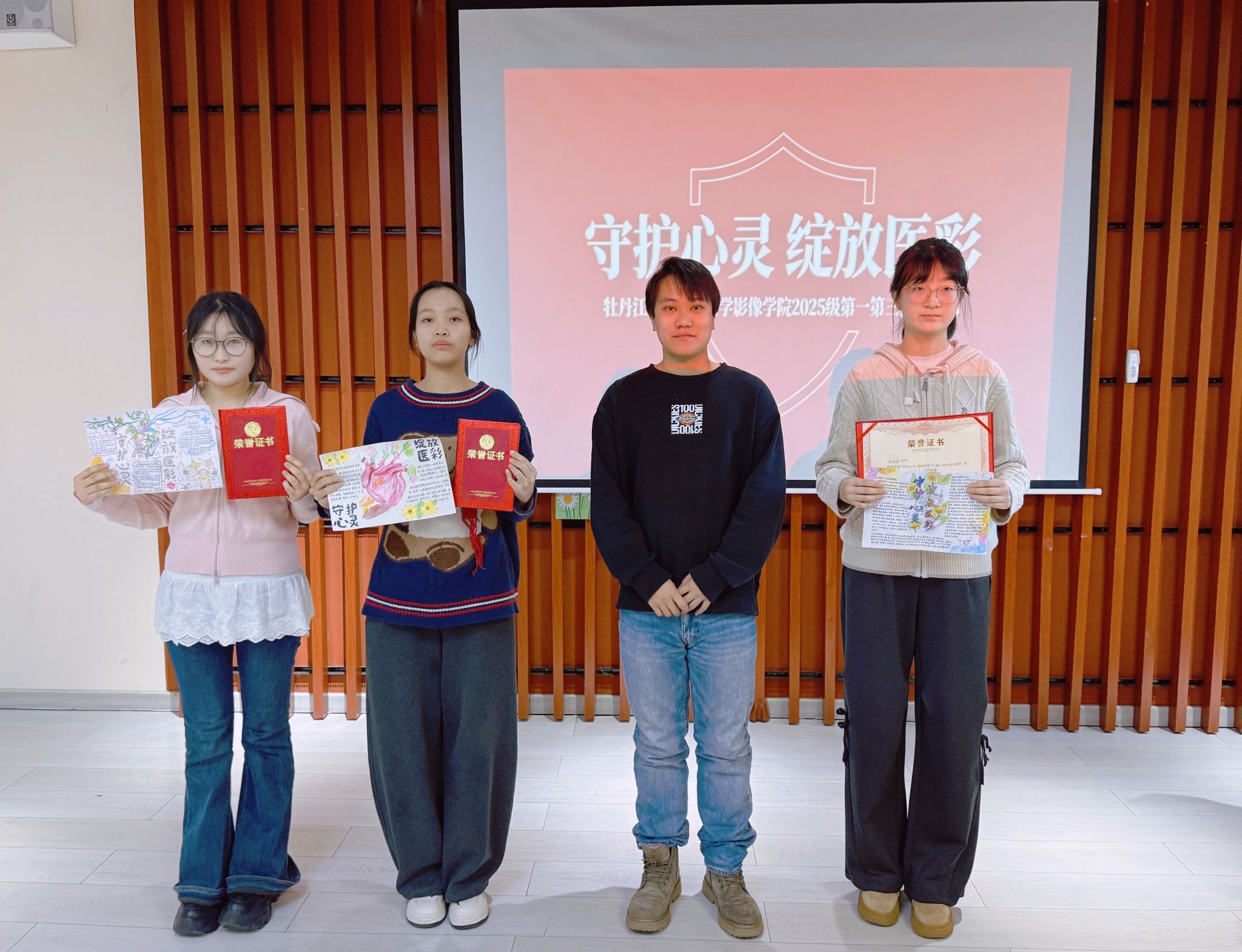 为深入贯彻落实“以生为本”育人理念,扎实推进“一站式”学生社区建设,有效关注与呵护学生心理健康,帮助新生更好适应学业生活、缓解阶段性压力。12月11日,医学影像学院在学校心理健康教育中心成功举办了“笔汇心灵画卷,声传青春力量”心理健康主题系列活动。围绕“领导干部联系班级”工作要求,特别邀请基础医学院正处级组织员李明泽参加活动。活动面向大一新生,分为心理健康主题手抄报创作与心理健康主题演讲比赛两个部分,以艺术表达与语言讲述相结合的形式,为同学们搭建了一个释放压力、传递温暖、启迪心灵的平台。