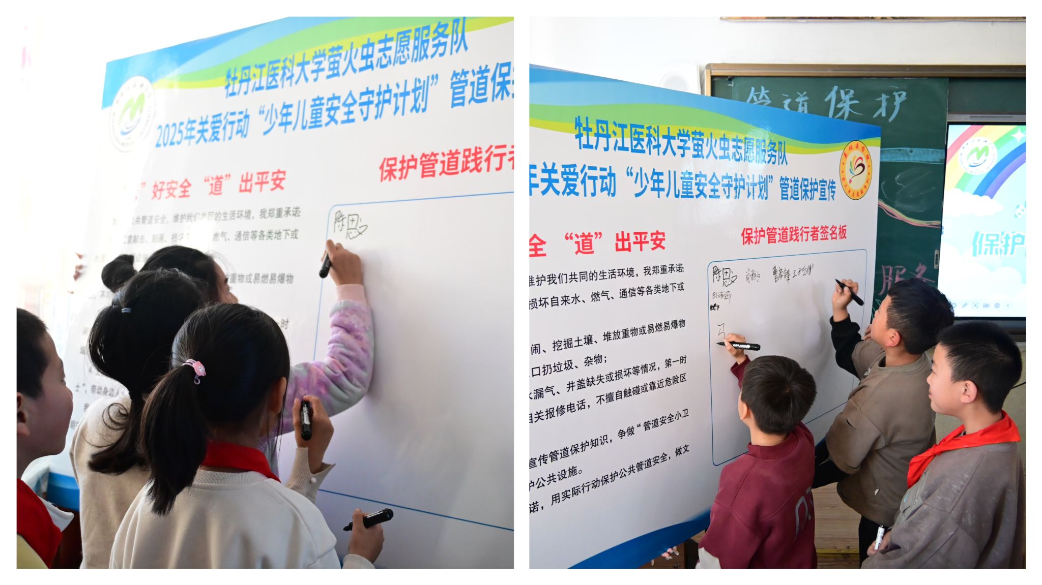 为深入学习贯彻习近平总书记关于青年工作的重要思想和关于志愿服务的系列重要指示批示精神,贯彻落实习近平总书记关于国家能源安全的重要论述。牡丹江医科大学基础医学院萤火虫志愿服务队积极响应团中央以及团省委号召,在学校团委的大力支持下,经过申报再次成功入选2025年关爱行动“少年儿童安全守护计划”管道保护宣传志愿服务团队。2025年12月12日,牡丹江医科大学萤火虫志愿服务队在指导教师唐懿鸣、队长李淇的带领下走进北安小学,开展主题为“‘管’好安全 ‘道’出平安”的管道保护宣传志愿服务活动。