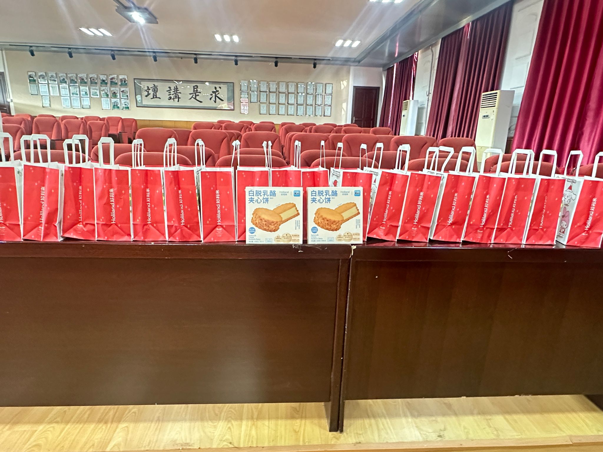 活动中,张洪本以“大家长”身份与学子亲切交流,叮嘱大家冲刺阶段既要专注复习,更要保障饮食、保暖与睡眠,筑牢高效备考基础。他将考研比作“大型临床技能考核”,鼓励学子正视积累、放下焦虑,以平常心应考,以进取心应战,稳定发挥所学。同时明确学校与老师是坚实后盾,期盼大家全力冲刺、斩获佳绩。现场,张洪本为学子发放包含饼干、橙子、苹果、“薯愿”“德芙”及特色钥匙扣的“考研加油包”,寓意“心想事成”,温馨氛围驱散了冬日寒意。