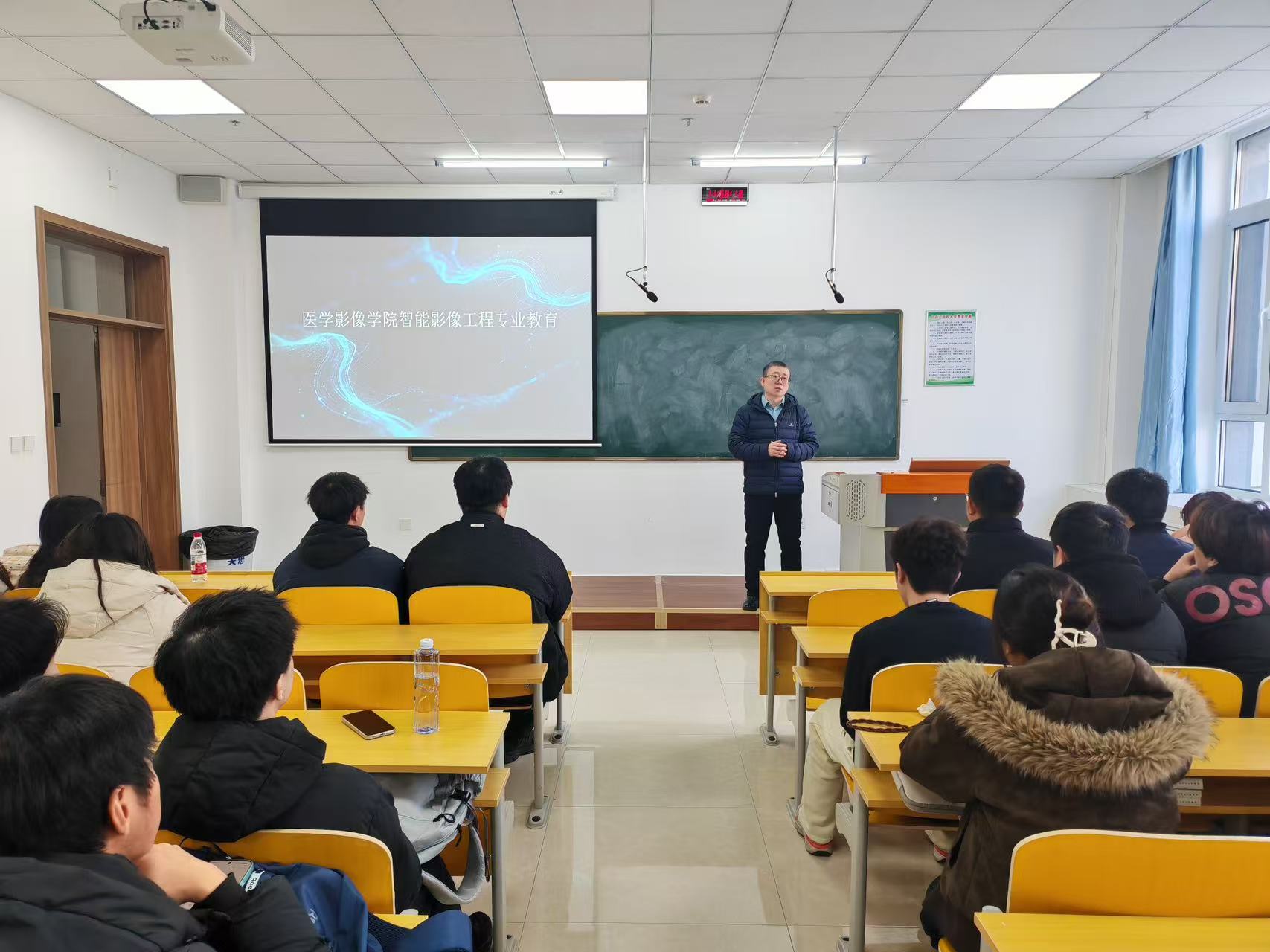 为助力学子明晰职业发展路径、提升就业核心竞争力,3月10 日中午,医学影像学院举办智能影像工程专业教育主题讲座。学院院长于广浩主讲,党委副书记宋海南主持,辅导员孙天超、仲昭奇及23、24、25级全体智能影像工程专业学生参会。